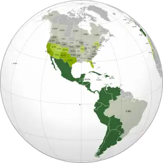 Obyvatelstvo této části světa tvoří převážnou část hispanofonních obyvatel mimo Španělska, kam přináleží obyvatelé dřívějších španělských kolonií na celém světě. Jedná se přibližně o 380 miliónů lidí. Kromě amerických států se za hispanofonní (španělsky mluvící) považují i Rovníková Guinea a Západní Sahara v Africe a částečně i Filipíny v Asii. Mimo hispanofonní země tvoří španělsky mluvící obyvatelstvo významnější část populace států Belize a USA (zhruba 44 100 000 lidí a 14,8% podíl Hispánců ve Spojených státech).