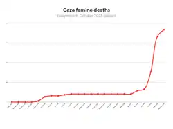 - ↑ V Gaze se podle expertů OSN šíří hladomor, na podvýživu zemřely další děti. Deník N [online]. 2024-07-10 [cit. 2025-08-12]. Dostupné online.