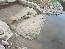 Lidé do tohoto skaliska tesali značky s letopočty a také nápisy svědčící o nízkých vodních stavech. Nejstarší čitelný záznam pochází z roku 1616. Z nápisů lze zmínit zejména nejzřetelnější a nejvýstižnější starý německý „Wenn du mich siehst, dann weine“ (Spatříš-li mne, plač) a také mladší český nápis, který radí „Neplač holka, nenaříkej, když je sucho, pole stříkej“.