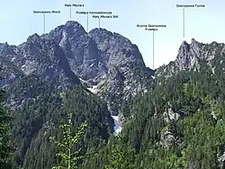 | Prostredný Mlynár | Pośredni Młynarz | 2079 | 49°11′45″ s. š., 20°06′06″ v. d. | |