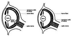 Starobylá loděnka má však štěrbinové oči, které jsou naplněné vodou. Má sítnici, ale ne čočku.[9]