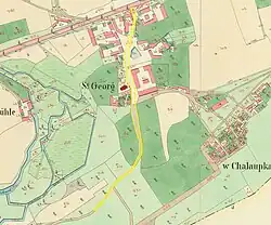 - Kostel svatého Jiří, kulturní památka. Římskokatolický farní kostel ve správě řádu křižovníků s červenou hvězdou. Jednolodní gotický kostel byl několikrát přestavěn, současnou novogotickou podobu získal v 19. století.