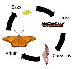 Rozmnožování hmyzu je velice rozmanité. Většina hmyzu se rodí z vajíček, ale některé druhy hmyzu jsou vejcoživorodé nebo živorodé.[14] Obvykle se rozmnožují dospělci, ale existují i výjimky (jev zvaný pedogeneze). Nejčastěji hmyz podstupuje pohlavní rozmnožování, ale někteří zástupci se poměrně pravidelně množí partenogeneticky (z neoplozených vajíček). Vajíčka hmyzu obecně obsahují velké množství žloutku, látky bohaté na glykolipoproteiny vitelogeniny, a jsou obvykle obklopeny podpůrnými buňkami (nurse cells), jež rovněž vyživují vyvíjející se oocyt.[15]
