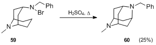 Podobně byly, i když s nižšími výtěžky, získány deriváty diaza-2,6 adamantanu, jako je sloučenina 60.[36]