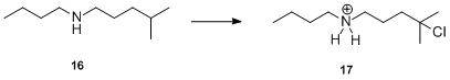 Přenosy terciárních oproti primárním vodíkům byly prozkoumány s využitím n-butylisohexylaminu 16; tato látka se za běžných podmínek rychle spotřebovávala, ale nepodařilo se izolovat žádný pyrrolidin, což naznačuje výraznou selektivitu vůči terciárnímu vodíku, terciární chlorovaný meziprodukt 17 byl rychle solvolyzován.