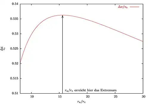Kubická rovnice na pravé straně má pouze jedno kladné řešení, které je přibližně . Jedná se o poměr velikostí počáteční a cílové orbity, pro které se spotřebuje při Hohmannově přechodu maximum energie. :