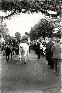 Návštěva italského královského páru v Kodani ve dnech 21.–23. června 1922. Průvod projíždí přes Kongens Nytorv. -