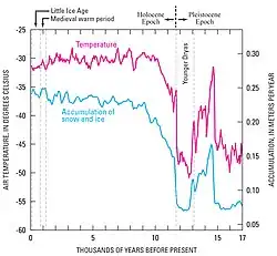- ↑ YIRKA, Bob. Canadian ice core samples show Holocene temperatures were higher than today. phys.org [online]. 2017-05-17 [cit. 2021-11-04]. Dostupné online. (anglicky)