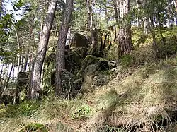 Na severních svazích, které jsou mírnější a hadec nevystupuje až k povrchu, jsou hlubší a humóznější půdy, které pokrývají acidofilní bory. Ve stromovém patře uplatňuje i smrk ztepilý (Picea abies). V bylinném patře dominuje bezkolenec (Molinia caerulea agg.) nebo třtina rákosovitá (Calamagrostis arundinacea), vesměs zde chybějí teplomilnější druhy.