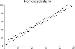 Homoskedasticita nebo homoskedastičnost ve statistice znamená, že podmíněný rozptyl dané náhodné veličiny je konstantní (je homogenní). Homoskedasticita je základní předpoklad pro aplikaci metody nejmenších čtverců pro odhad parametrů regresní funkce.