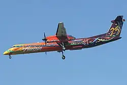 - Dvě letadla, N439QX a N438QX, mají schéma zvané Comfortably Greener, které zvýrazňuje nižší spotřebu letadla Q400 oproti obvyklým regionálním strojům. Letadlům se přezdívá Shrek a Fiona.