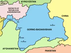 - Murgabský okres – od Dušanbe jedna z nejvíce izolovaných oblastí Tádžikistánu. Etnicky i komunikačně napojen spíše na kyrgyzskou Ošskou oblast.
