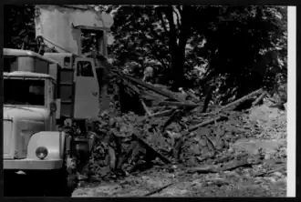 Na základě pomnichovských událostí byla 8. října 1938 byla část obce Horní Domaslavice anektována Polskem. Novou státní hranici tvořila i přes nevoli zdejšího většinově českého obyvatelstva řeka Lučina, anektován byl pravý břeh, tedy i zámek. V budově zámku byli ubytováni polští vojáci. Po válce se Folvarčný zasazoval o opravu zchátralého zámku. Zámek vyžadoval nezbytné opravy střechy. Narazil však na nedostatek stavebního materiálu. Podařilo se mu pouze získat materiál na zpevnění jihozápadního opěrného pilíře, který je dnes poslední stojící památka po zámku. Zavadil o opravu zchátralého zámku zájem neměl. Zámek dále chátral, až se nad polovicí Folvarčných propadla střecha. V polovině padesátých let se proto ze zámku Folvarční i Zavadilovi vystěhovali. Po vzniku JZD Horní Domaslavice přešly pozemky pod správu družstva. Folvarčný vstoupil do družstva 13. března 1959, s výměrou zemědělské půdy 3,64 ha. JZD u zámku začalo pást nižší desítky býků, kteří demolovali vnější fasádu budov. Prázdný zámek v dezolátním stavu se stal útočištěm místní mládeže. Když se 22. června 1961 zřítila celá střecha zámku, požádalo MNV Horní Domaslavice o upuštění od památkové ochrany zámku, čemuž bylo vyhověno. Demolice zámku proběhla v létě roku 1964. Sutí byly zpevněny obecní cesty, či byla rozebrána jako stavební materiál občany obce.