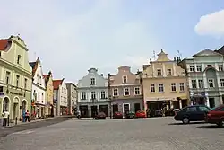 Na náměstí se vyjímá mariánský sloup z roku 1617 a kolem něj se zachovala řada měšťanských štítových domů ze 17. až 19. století. Radnice uprostřed náměstí byla postavena v roce 1608 v pozdně renesančním stylu. Roku 1880 došlo k její částečné přestavbě. Po poškození v roce 1945 byla zrekonstruována v letech 1955 až 1957.