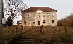 Po zřízení německého školního okresu Česká Lípa obec v roce 1876 dokončila stavbu nové obecní školy (čp. 72) se třemi učebnami a školním bytem, školní zahradou a školním ovocným sadem. Projekt školního areálu počítal též s výstavbou školního hřiště a koupaliště na protějším pozemku přes silnici.[27] Posvěcení školní budovy se odehrálo 15. října 1876 na den zdejšího posvícení (Kirchweihfest).[28][29] Starou školní budovu se školní rada rozhodla v listopadu 1876 odprodat.[30]