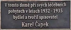 - ↑ Karel Čapek ve Varech [online]. Praha: Lidové noviny, 2019-05-18 [cit. 2021-03-13]. Dostupné online.