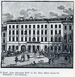 Hotel fungoval v klasicistní budově nejpozději od počátku 19. století. Čtyřpodlažní stavba sloužila jako luxusní hotel, kde se ubytovávaly přední osobnosti té doby, které navštívily Prahu: roku 1812 zde pobýval Ludwig van Beethoven, roku 1829 a 1830 pak Frédéric Chopin. Později význam hotelu upadl a stal se jedním z několika elegantních hotelů ve městě. Hovorovým jazykem byla téměř po celou dobu provozu hotelu němčina.