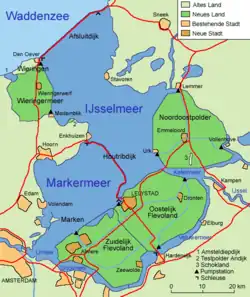 mapa projektu Zuiderzeewerken s poldrem Markerwaard
