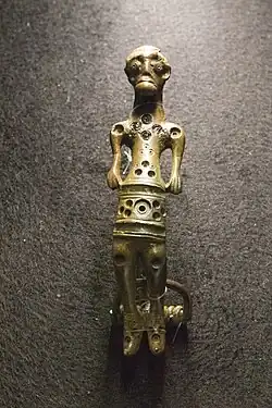 - Pohřebiště ze střední doby halštatské[11] až časného období laténské kultury) v oblasti pole Na Hrobcích, které se nachází západně od vesnice, bylo objeveno náhodně traktoristou roku 1964 a v letech 1965–1982 zkoumáno Evou Soudskou. Prozkoumáno bylo 221 hrobů a 21 s nimi souvisejících objektů na západním a severním okraji pohřebiště, jehož velká část byla zničena hlubokou orbou.[12] Nejvýznamnějším nálezem je bronzová maskovitá spona ve tvaru mužské figurky, která je součástí sbírky Národního muzea.[13] Část výbavy hrobů tvoří jednoduché zlaté kroužky a jiné drobné předměty, které jsou pravděpodobně místního původu a materiál na jejich výrobu byl získáván těžbou zlata v okolí Manětína.[14]