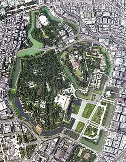 Letecký pohled na areál hradu Edo, dnes japonský císařský palác