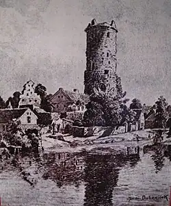 Dominantou zachované části hradu je 22 metrů vysoká okrouhlá věž, na které jsou u vstupu umístěny tři erby majitelů vytesané z pískovce. Ve druhém podlaží věže je dochována pozoruhodná kaple na kruhovém půdorysu. Věží prochází šnekové schodiště. Na nádvoří jsou zachovány zbytky obvodových stěn bývalého paláce. Věž byla za Jana z Jenštejna navýšena, což je znát na navázání užší horní části na širší spodní. Tento přechod byl využit jako ochoz pro strážce, později byl upraven na krytou pavlač. Původní vstup byl až v prvním patře po padacím můstku, ale později byl proražen nový v přízemí. Věž byla zastřešena kamennou helmicí se čtyřmi vikýři, zbytky zastřešení je možné vidět na starých rytinách (ještě na rytinách z 19. století jsou patrné).[6]