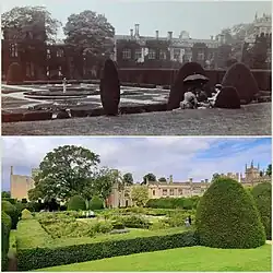 Zahrada je rozdělena do deseti samostatných zahrad, přičemž ústředním bodem je Královnina zahrada. Královnina zahrada je viktoriánskou výsadbou původní alžbětinské zahrady s parterem, která byla objevena na stejném místě, velké tisové živé ploty, které ji obklopují, pocházejí z roku 1860.[43]