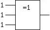 Možná je také druhá interpretace, vycházející z pojmu „exkluzivní“ logický součet stejně jako z IEC značky hradla XOR (viz obr. vpravo). Podle této interpretace je výstup log.1 tehdy a jen tehdy, pokud právě na jednom z N vstupů je log.1, což by odpovídalo také „=1“ ve značce IEC. IEC značka však nebyla myšlená pro širší než 2-vstupové hradlo a takovéto její rozšíření není platné. Tato interpretace vícevstupového hradla XOR není v praxi častá, protože sčítačky a generátory parity jsou častější než detektory „1 z N“.
