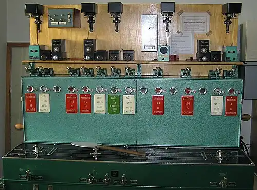 - traťové souhlasové hradlo: Výpravčí si jím vzájemně udělují traťové souhlasy pro vjezd na trať vybavenou poloautomatickým blokem (poloautoblokem).