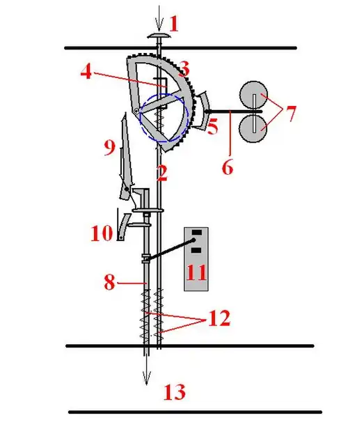 13: pravítková skříň s mechanickými závislostmi