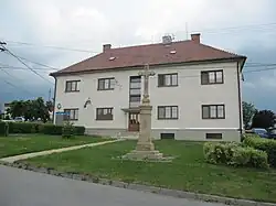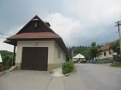- Hasičská zbrojnice s dřevěnou sochou svatého Floriána