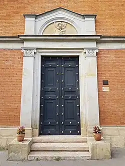 Průčelí směřuje k jihovýchodu. Jeho střední vyšší část, která je zakončena trojúhelným štítem, tvoří rizalit. Na vrcholu štítu vévodí kamenný kříž na podstavci. Edikulový portál je zvýrazněn nástavcem nad římsou, jejíž oblomená část slouží zároveň jako architráv edikuly. Po stranách vstupu jsou pilastry se stylizovanými hlavicemi tvořenými florálními prvky. V tympanonu se nachází czerninský erb. Průčelí je rozčleněno horizontálními architektonickými články, ke kterým patří kamenný sokl ukončený profilovanou římsou, hlavní římsa oddělující horní část stavby a drobnější korunní římsy, které završují jak plné atiky na nižších postranních částech, tak lemují trojúhelný štít. Vstupní kovové dveře jsou dvoukřídlé, jsou členěny výplněmi a vyzdobeny hřeby s dekorativní hlavicí.[3]