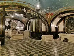Pohled z druhé místnosti do první místnosti, zcela vpravo společný sarkofág arcivévody Josefa Augusta († 1962) a jeho rodiny -