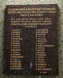 - ↑ KAREŠ, Josef. Pamětní deska Obětem 2. světové války [online]. Spolek pro vojenská pietní místa, o.s.; (Praha 2), 2011-09-21 [cit. 2015-01-27]. Dostupné online.