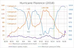 ![]() Hurikán Florence nad Atlantským oceánem; 12. září 2018 | |||||||||||||||