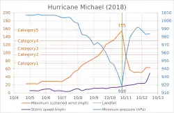 ![]() Hurikán Michael 10. října při své největší intenzitě u pobřeží Floridy | |||||||||||||||