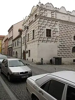 - ↑ DVOŘÁKOVÁ, Vlasta; MACHÁLKOVÁ, Helena. Malovaná průčelí české pozdní gotiky a renesance. Zprávy památkové peče. Roč. XIV, 1954, s. 33–73. [Dále jen: DVOŘÁKOVÁ, MACHÁLKOVÁ, Malovaná průčelí].