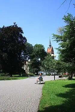 Obrázky, zvuky či videa k tématu Husův sad na Wikimedia Commons - Přehled ostravských hřbitovů přeměněných v parky