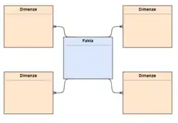 Hvězdicové schéma je nejjednodušší schéma datového skladu. Ve tvaru hvězdy se skládá z jediné centrální tabulky faktů propojené s periferními dimenzemi. Tabulka faktů představuje jeden typ obchodního měření, který je složen z odkazů na jeho popisné dimenze, ze souboru obvykle číselných a doplňkových opatření.[1]