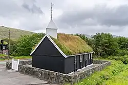 V obci se nachází typický dřevěný kostel postavený v roce 1829 na místě původního kostela, který byl v noci z 21. na 22. ledna 1829 zničen bouří.[3] Je nejstarším kostelem z 11 faerských kostelů.[2] Kostel byl postaven během 3–4 měsíců a jeho architektem byl Joen Michelsen z Velbastaður. Byl postaven z borového dřeva pocházející z lodi Boon z Glasgowa, která v roce 1829 najel na mělčinu v okolí obce Saksun.
