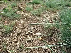 Vytrvalá, dlouhověká sivozelená rostlina dorůstající do výše 8 až 15 cm. Vytváří hustý trs který má silný a hluboký primární kořen s plazivými rozvětvenými oddenky. Z trsu vyrůstá vytrvalá přízemní růžice, listy v ní bývají dlouhé asi 5 cm, jsou velmi úzké 1 až 2 mm a po okraji drsné. Lodyha je přímá, článkovaná a je porostlá listy kratšími než jsou přízemní.