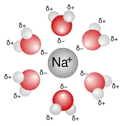 - Navázání vody na rozpuštěné ionty, kdy se vytvoří tak zvaná hydrátová skořápka (nebo také hydrátová koule).