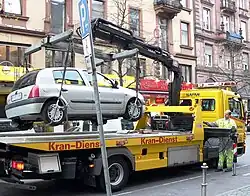 Odtahové vozidlo - pro odvoz osobních automobilů se používá hydraulická ruka, která má místo háku rám se závěsy pro zdvihnutí osobního automobilu na plošinu odtahovky. Takto lze "vytáhnout" z řady zaparkovaných vozidel jediné. Před nebo za vozidlem není potřeba příliš prostoru. Způsob je navíc šetrný k vozům zaparkovaným se zařazenou rychlostí.