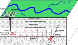 - ↑ a b What environmental issues are associated with hydraulic fracturing?. www.usgs.gov [online]. [cit. 2018-09-16]. Dostupné online. (anglicky)[nedostupný zdroj]