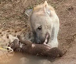- ↑ Crocuta crocuta (Spotted Hyaena). www.iucnredlist.org [online]. [cit. 2018-05-06]. Dostupné online.