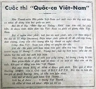 Státní hymnou Vietnamské republiky byla v období 1948–1975 píseň známá jako Tiếng Gọi Công Dân (Národní hymna Vietnamské republiky), původně známá jako Pochod mládeže (vietnamsky: Thanh Niên Hành Khúc) nebo Pochod studentů (vietnamsky: Sinh Viên Hành Khúc). Text i hudbu složil Lưu Hữu Phước.