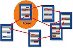 Pravděpodobně první popis této myšlenky přišel v roce 1945, kdy Vannevar Bush napsal článek v The Atlantic Monthly nazvaný „As We May Think“ o zařízení budoucnosti, které nazval „Memex“. Popsal tento přístroj jako elektronicky připojený do knihovny a schopný zobrazovat knihy a filmy z knihovny a také automaticky sledovat odkazy.