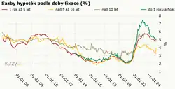 - ↑ Sazby hypotečních úvěrů Hypotéky, kurzy.cz