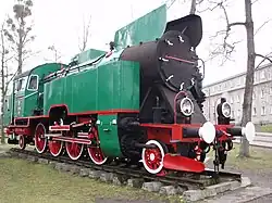 Před nádražním se nachází polská parní lokomotiva řady TKt48, vyráběná v letech 1950 až 1957 v Chrzanówě.