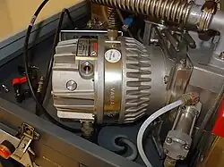 Vakuum je získáváno kombinací činnosti celkem 4 vakuových pump. Ve vzájemné součinnosti pracuje vždy jedna klasická olejová vývěva, která odčerpává hlavní množství přítomného plynu. Zbytek je pak odsáván turbomolekulární pumpou, která při otáčkách rotoru kolem 60 000 rpm odstraňuje atomy plynu mechanickými nárazy lopatek rotoru o velmi vysoké rychlosti.