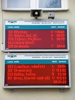 - ↑ Jízdní řády [online]. Idsjmk.cz [cit. 2022-12-13]. Dostupné online.